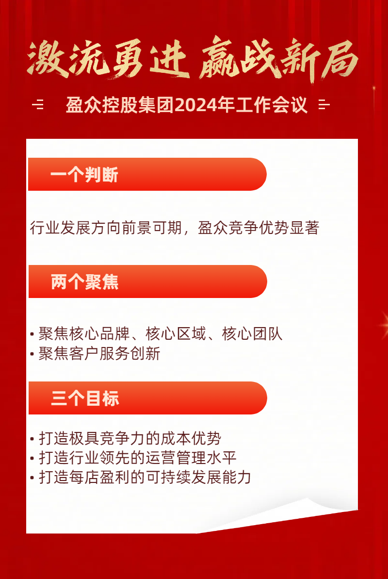 報告最后,易總對全體干部提出了要求與期望,希望大家于盈眾同舟共濟,顧全大局;于團隊身先士卒,敢打勝仗;于自己廉潔奉公,守正創(chuàng)新;于過程全情投入,全程緊盯;于結果勇于擔責,言出必踐。“2024年注定是延續(xù)巨大挑戰(zhàn)的一年,望全體同仁,不畏萬里關山,在激流中奮勇前進,贏取勝利新局面。”
